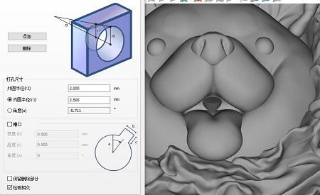 最后,赤兔软件支持保留孔桩,magics也可选保留孔桩,用以打印完后补洞。模型清洗完后,需要放置一段时间,待内部酒精蒸发干净后再补洞。另外,一般LCD都会存在膨胀现象,因此孔桩需要打磨后才可补入。