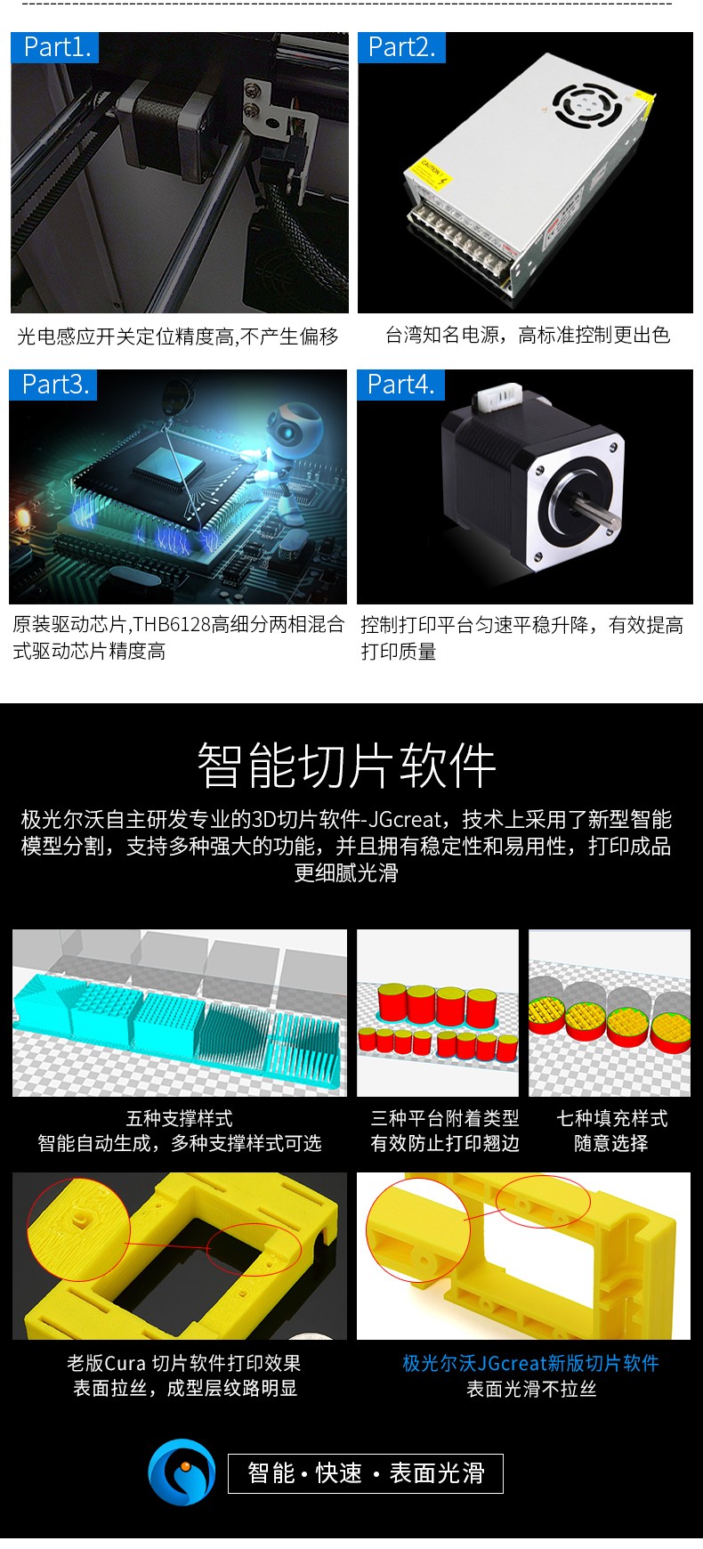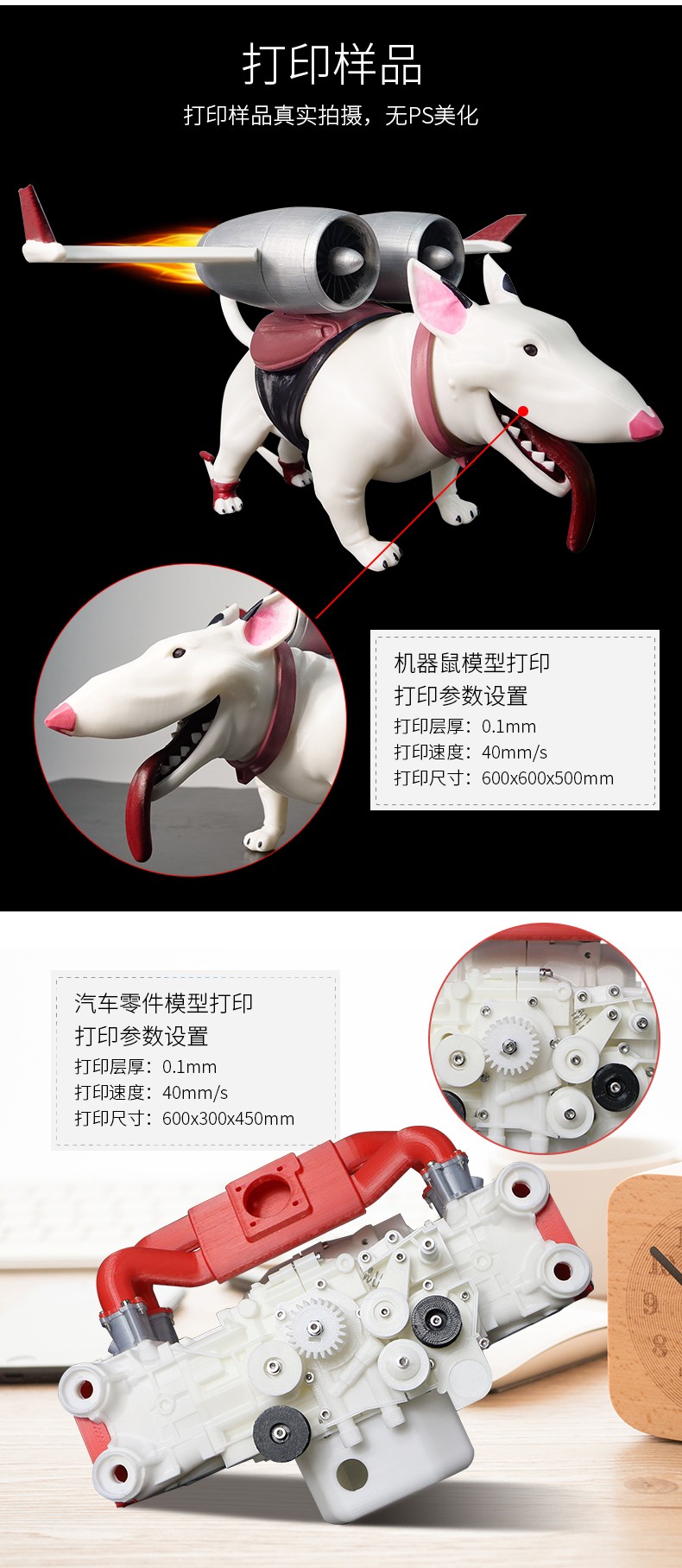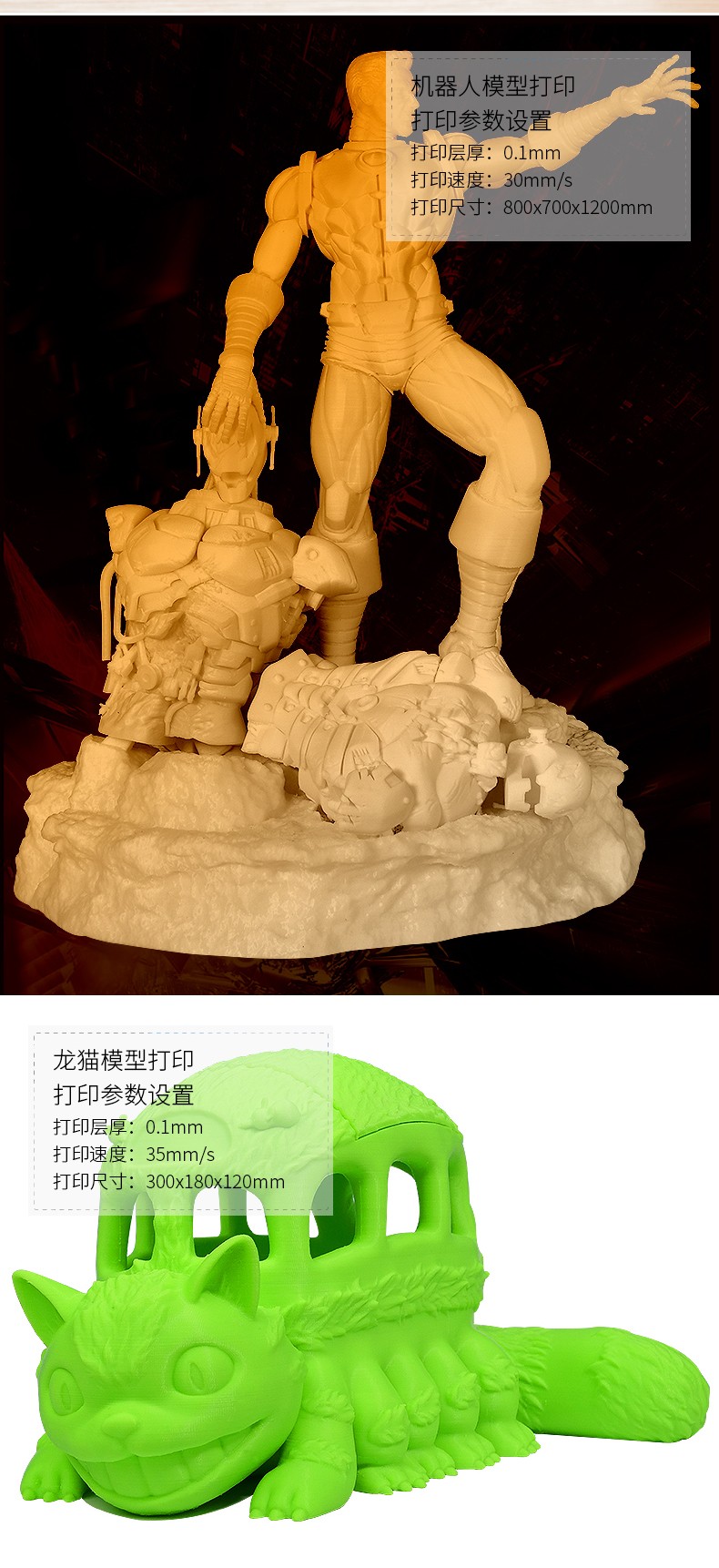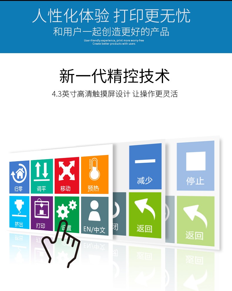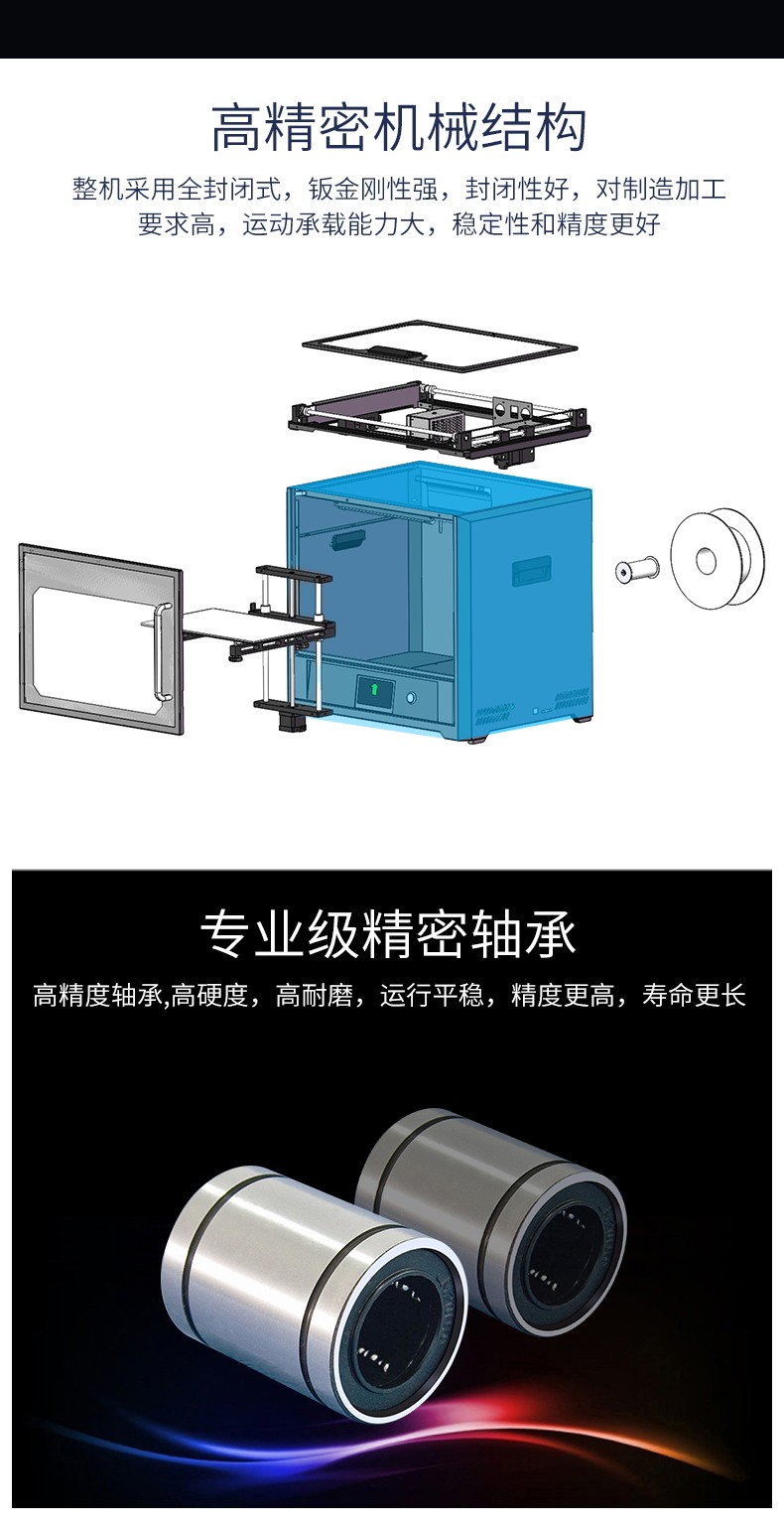 4.3英寸电容触摸屏,清晰美观,操作简单;FA特制平台,打印完成可取下平台,轻松取模;模块化一体式封闭设计,提高模型打印成功率;内置空气过滤系统,有效滤除打印过程中产生的颗粒;具有暂停续打、断电续打及断料检测等功能;高精度,大尺寸打印,可应对各种结构复杂的手办模型